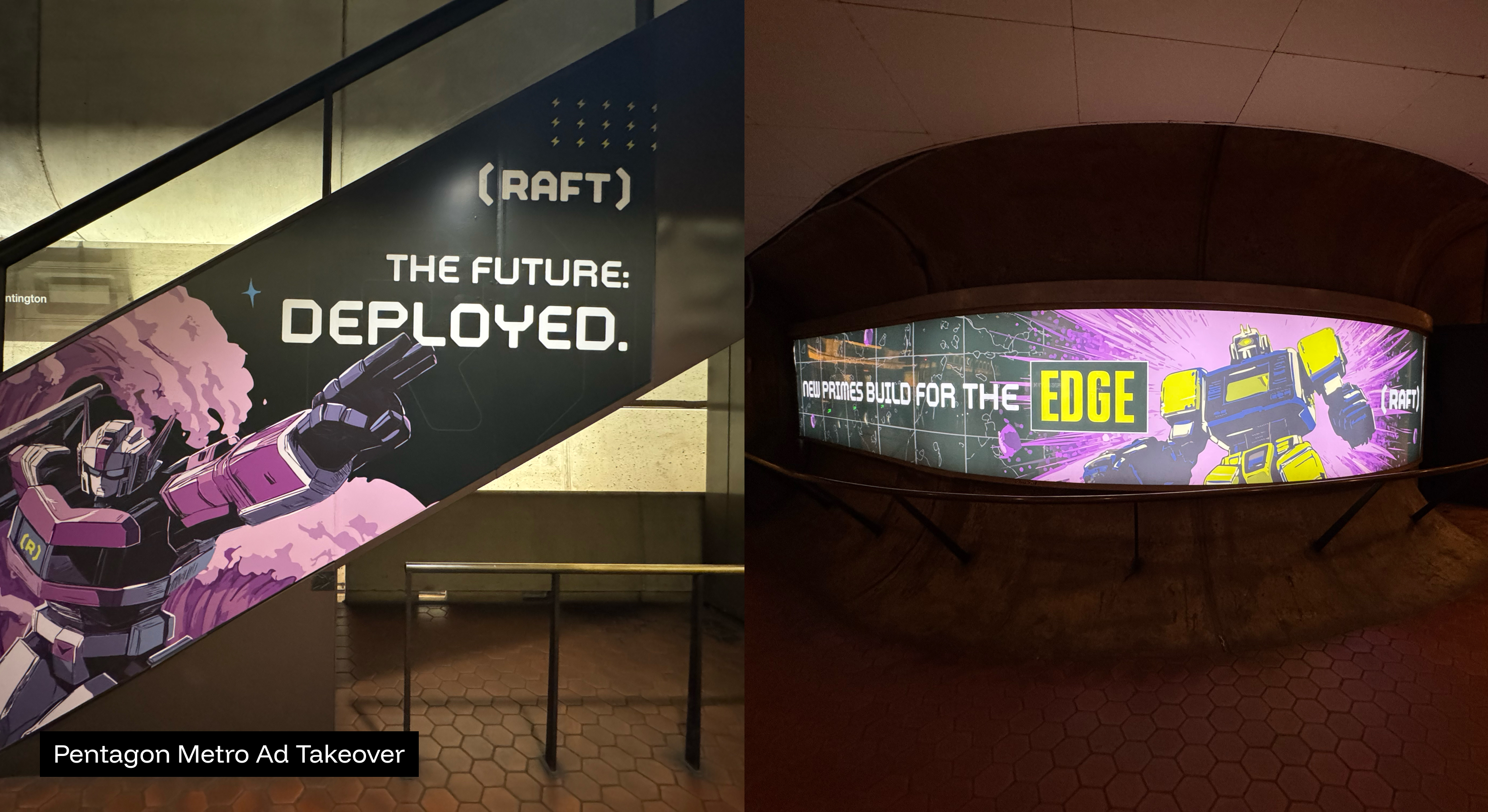 Raft launched a full-scale takeover of the Pentagon City Metro station, select WMATA rail cars, and Washington, DC buses to introduce their newest suite of edge-computing technologies. As a defense-focused technology company working at the intersection of software, data, and mission systems, Raft wanted a campaign that was bold, impossible to ignore, and unmistakably different from traditional government-sector advertising. The goal was to create a high-impact public presence that signaled innovation, capability, and momentum while speaking directly to the operators, engineers, and decision-makers who move through these transit hubs every day. *Project Note: This was designed while employed at Punch Digital Strategies.